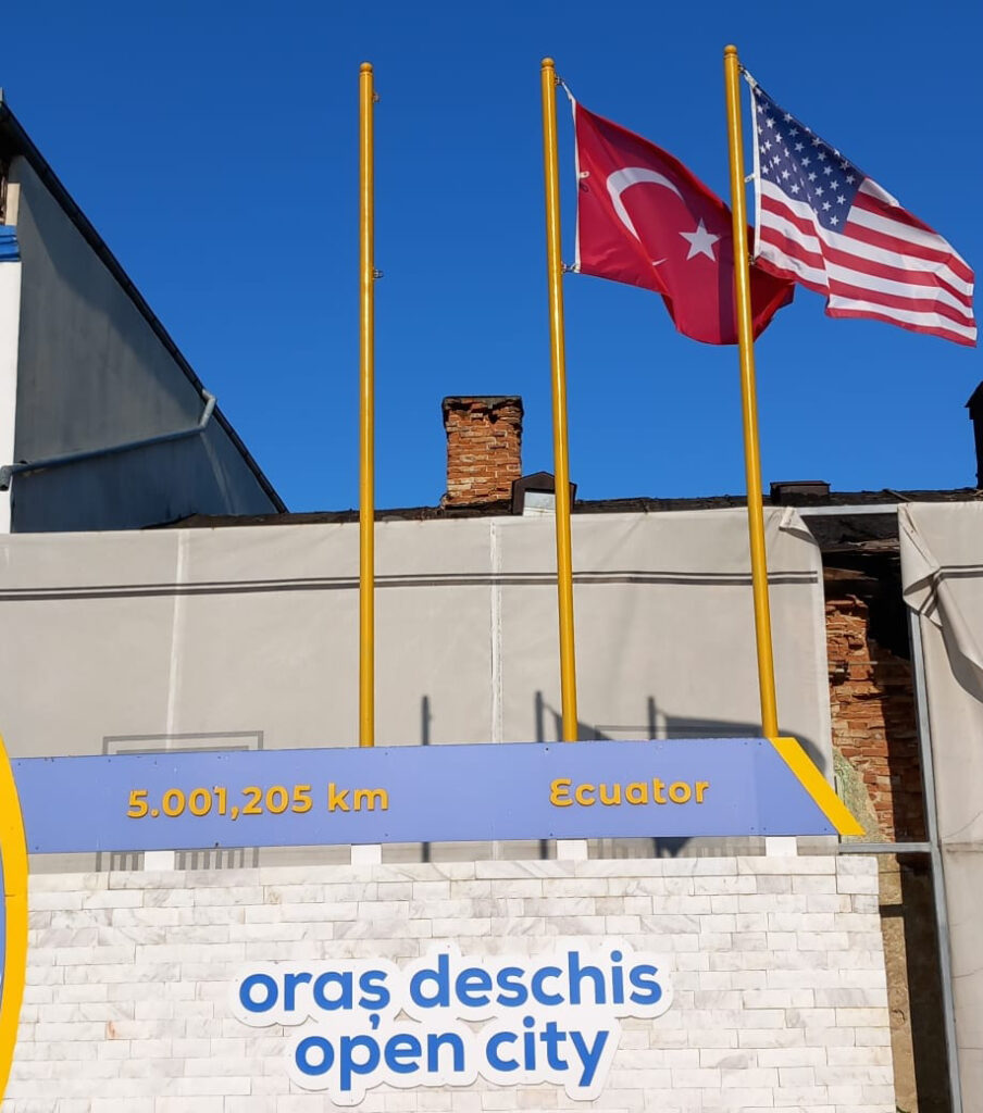 În fața gării din Buzău sunt arborate șase steaguri, printre care și cel al Rusiei, țara care a invadat Ucraina și cu care relațiile oficiale de stat ale României sunt extrem de reci. Semnificația arborării steagului de către primărie are legătură cu faptul că Buzău, la fel ca alte orașe din Rusia, SUA și alte țări, ar fi situat la distanță egală între Ecuator si Polul Nord.